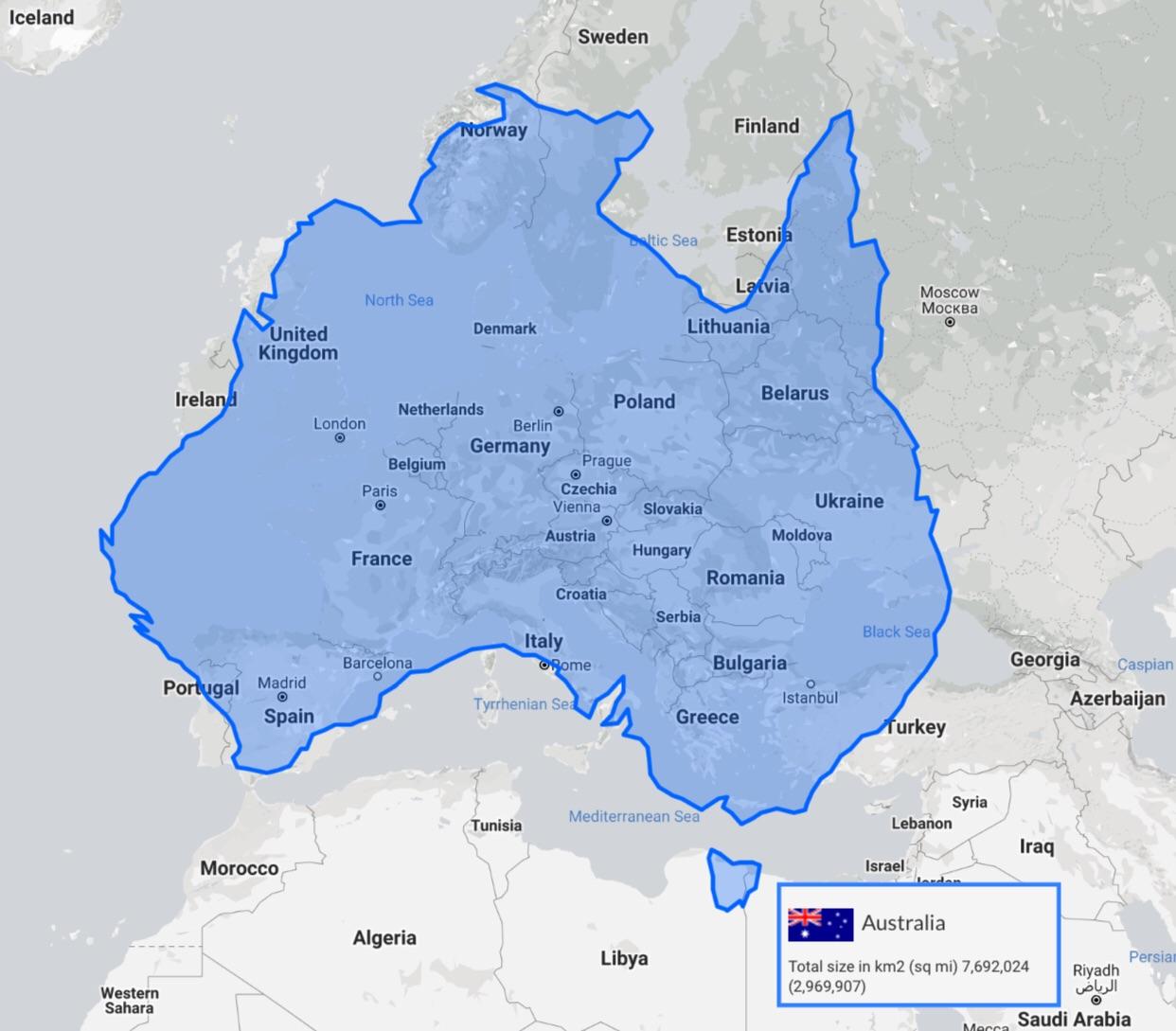 Wir haben erst den halben Kontinent überflogen und spüren nun besonders die Grösse Australiens. Wer die Karten Europas und Australiens übereinander legt, sieht, dass der „alte Kontinent“ komplett in Australien hineinpasst. So gesehen würden wir uns auf dem Weg von Istanbul nach Dublin jetzt etwa in Frankfurt befinden. Das ist natürlich nicht exakt, dient aber vielleicht dem Vorstellungsvermögen. Als Stadtbewohner aus Deutschland verschiebt sich nun mein Massstab für das was weit ist und was nicht.