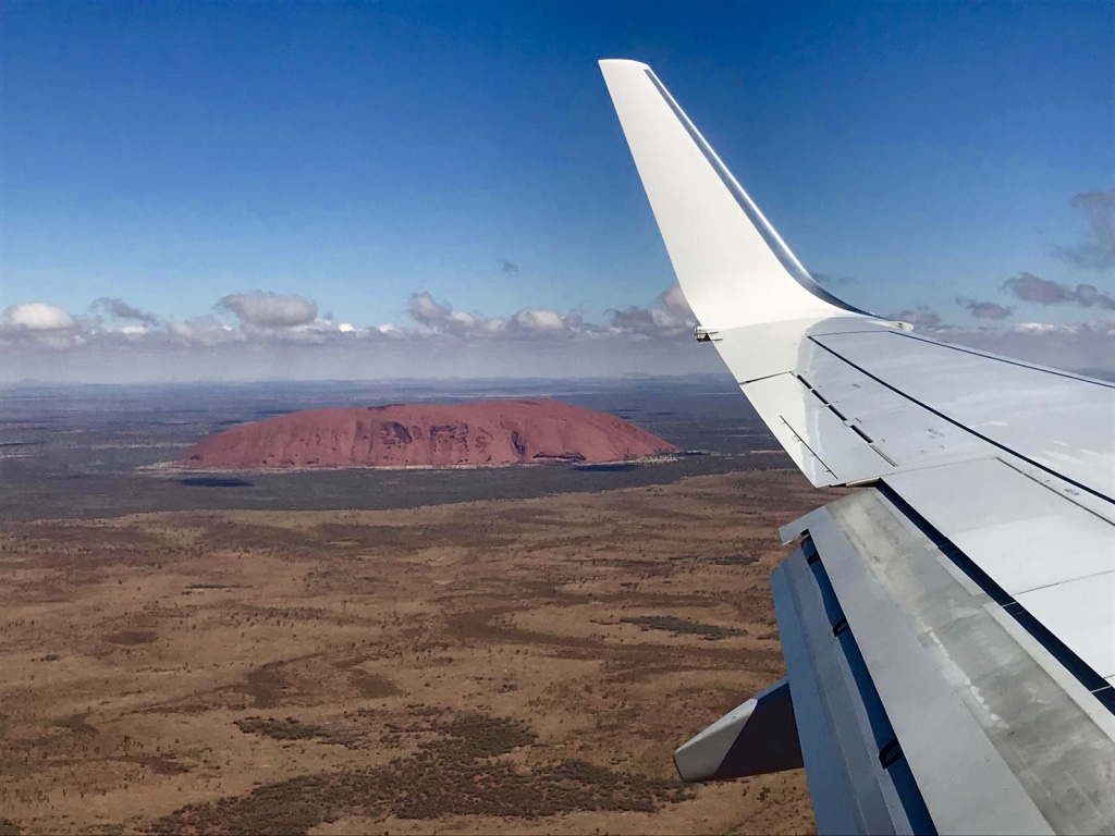 Es ist mehr als drei Stunden her, dass das Flugzeug in Sydney gestartet ist. Ich sehe aus dem kleinen Fenster, nehme viel braun, rot, etwas grün und ocker wahr, jedoch nichts, woran meine Augen haften bleiben. Die Crew kündigt den baldigen Landeanflug zu DEM touristischen Hotspot Australiens an: dem Uluru.