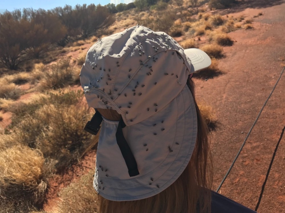 - Das Elend mit den Buschfliegen ist wirklich gross. Sie kleben an jedem von uns zu Dutzenden und versuchen, in alle möglichen Körperöffnungen zu fliegen und zu krabbeln. Ich würde es nicht erwähnen, wenn es nicht eine wirkliche Plage gewesen wäre. Zeitweise hatte jeder von uns mehrere Dutzend dieser harmlos wie Stubenfliegen aussehenden Biester am Körper. Meine Phantasie geht mit mir durch und ich habe das Bild von einem grossen Haufen Notdurft vor meinem inneren Auge. Falls ich ein schlechtes Karma haben sollte und im nächsten Leben mein Dasein als Kot fristen muss, habe ich heute eine ganz genaue Vorstellung davon, wie es sich anfühlen muss. Das hat den Genuss des Aufenthaltes geschmälert. Ich gebe es zu.