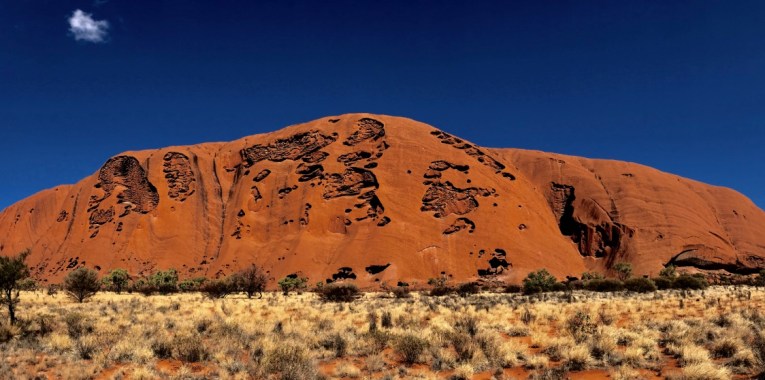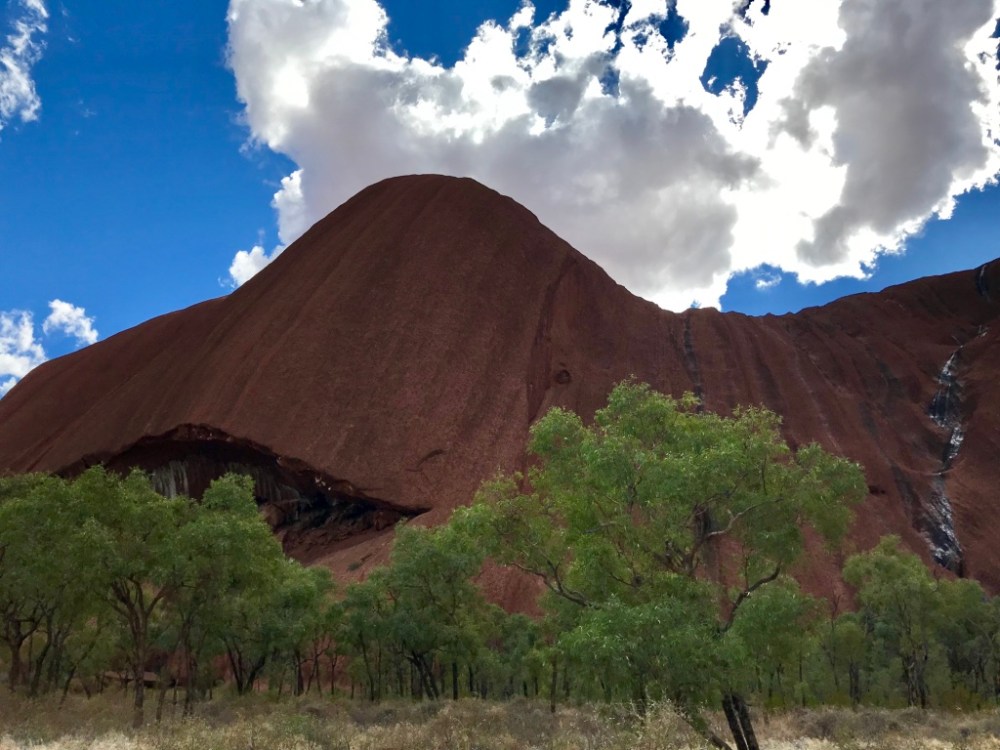 Uluru ist der Name, den die Anangu, die seit zehntausenden Jahren hier leben, diesem besonderen Ort gegeben haben. Vor etwa 30 Jahren wurde das Gebiet um diesen mächtig wirkenden Felsen an die Ureinwohner Australiens zurück gegeben. Bis dahin war der riesige Stein auch als Ayers Rock bekannt.