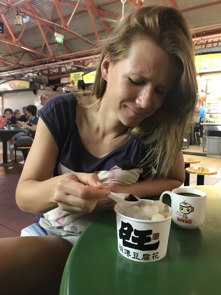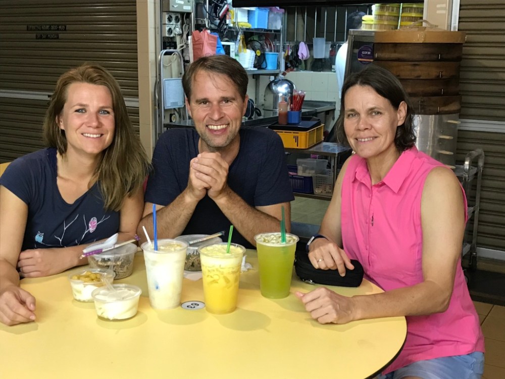 Trotzdem ist die kulinarische Vielfalt in Singapur hervorragend und wie ihr seht, schmeckt es uns ausgezeichnet. Wenn wir nicht aufpassen, sehen wir bald so glücklich aus, wie der Mann in der Mitte.