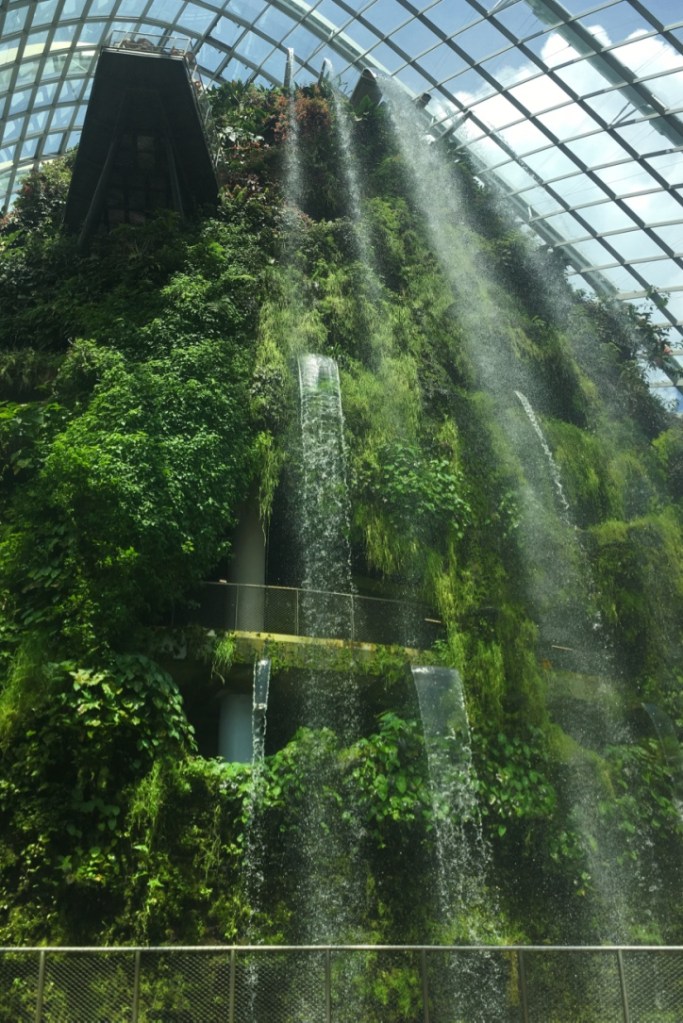 Auf dem Gelände befindet sich auch der Flower Dome sowie der Floral Garden. Beide geben mir das Gefühl, mich wie unter einer riesigen Glasglocke auf einem fremden Planeten zu befinden. Hier wurde ein Miniaturökosystem nachgebaut. Ich sehe Wasserfälle, kleine Flüsse, Nebel, Bäume und ein üppiges Spektrum verschiedener Pflanzen.