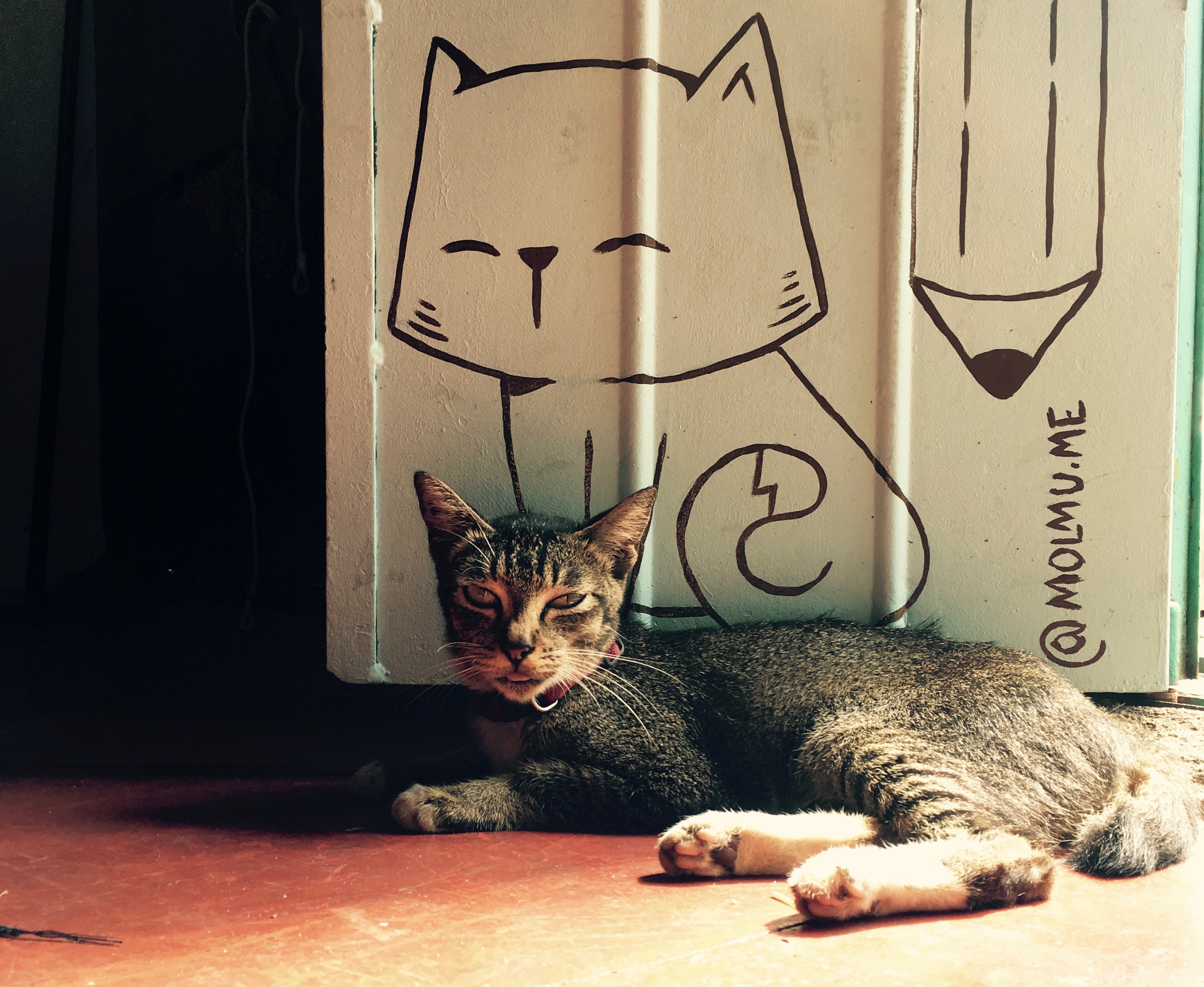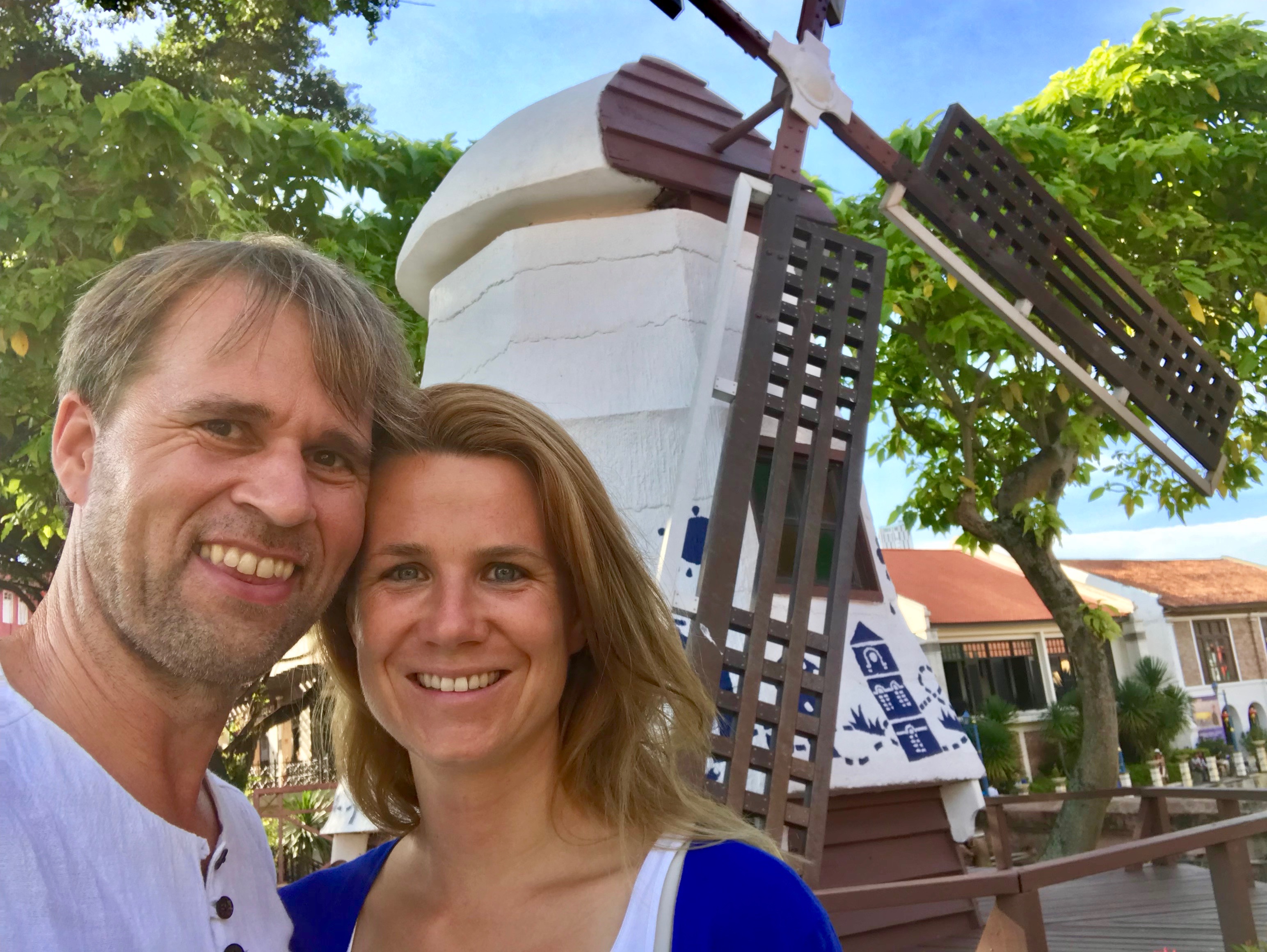 In Melaka werden wir herzlich von unseren Gastgebern Teena und Lee empfangen. Wir bekommen sofort selbstgebackene Kekse und hach, einen Kaffee in einer Tasse angeboten. So gefällt es mir. Wir sind uns gleich sympathisch. Beide sind in meinem Alter, sie ist muslimische Malaiin mit spanischen und chinesischen Wurzeln und er kommt ursprünglich aus England. Auch eine kleine Katze, die die süsse Angewohnheit hat, ihre Zunge ständig raushängen zu lassen, wohnt bei ihnen.