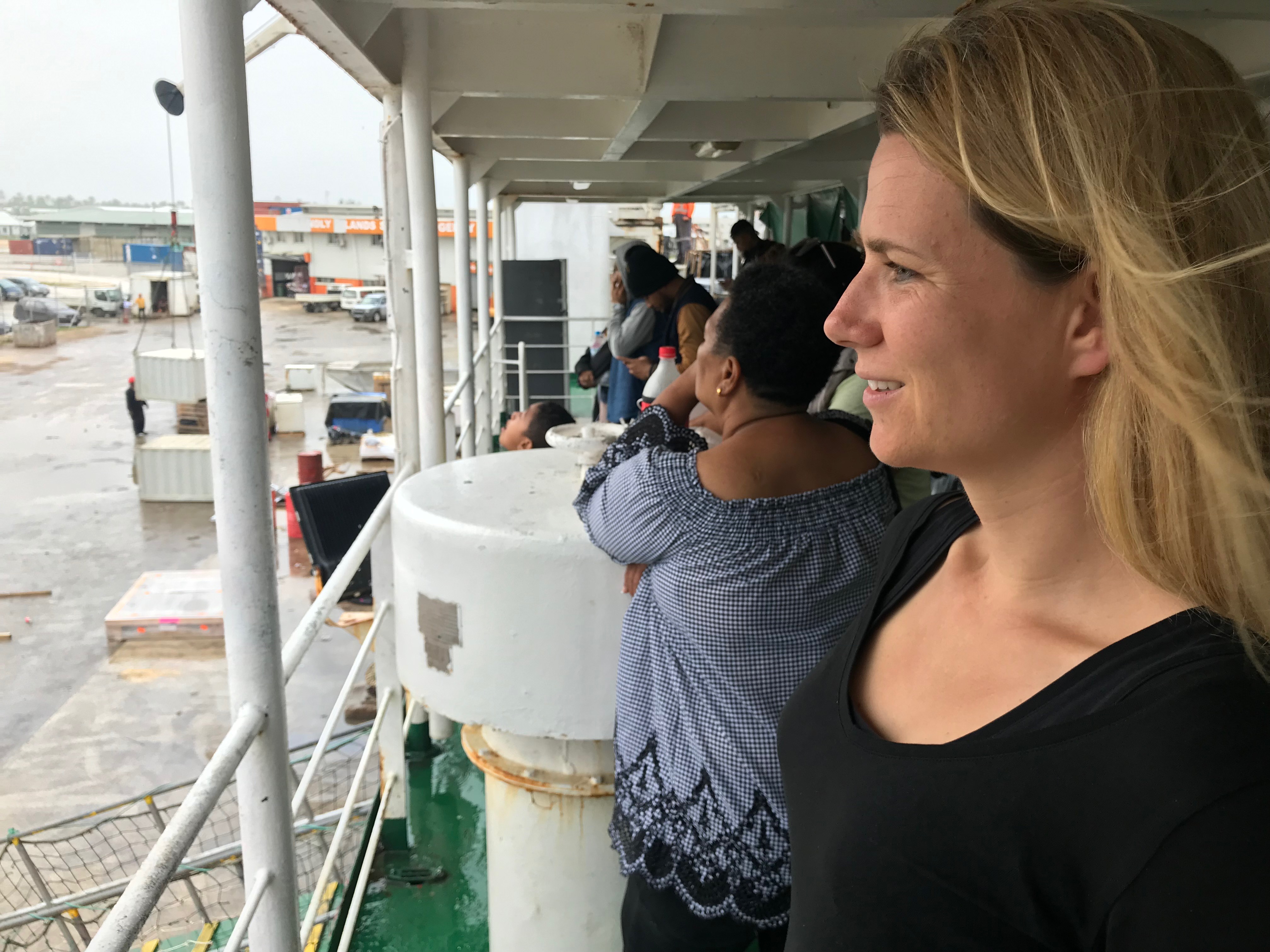 Einmal in der Woche findet in Hafennähe ein Markt statt. Nach Tagen der unfreiwilligen Obst- und Gemüseabstinenz hoffen wir so sehr darauf, dort nun endlich frisches Grünzeug kaufen zu können. Wir sehen vier Stände, die es unter der Woche dort sonst nicht gibt: einer bietet Klamotten an, einer grillt Fleischspiesse, eine Frau verkauft selbstgebackenen Kuchen und am letzten Stand werden grüne Blätter angeboten. Wir freuen uns schon und hoffen auf eine Art regionalen Spinat. Unsere Enttäuschung ist jedoch gross, als uns gesagt wird, dass dies die Blätter sind, in denen man das Fleisch zum Grillen einwickelt. Essen kann man die Blätter nicht. Oh je, es bleibt also alles beim Alten.