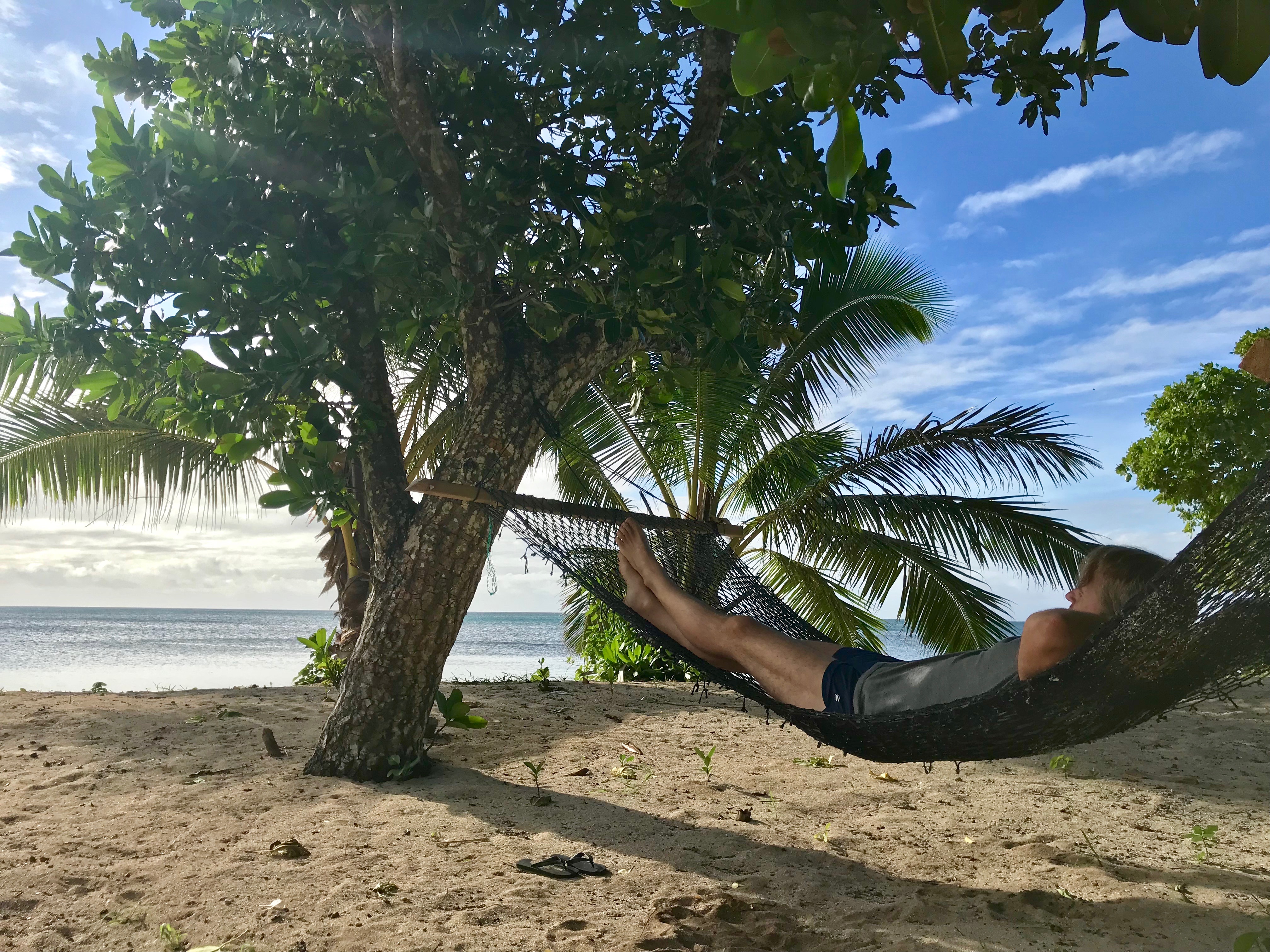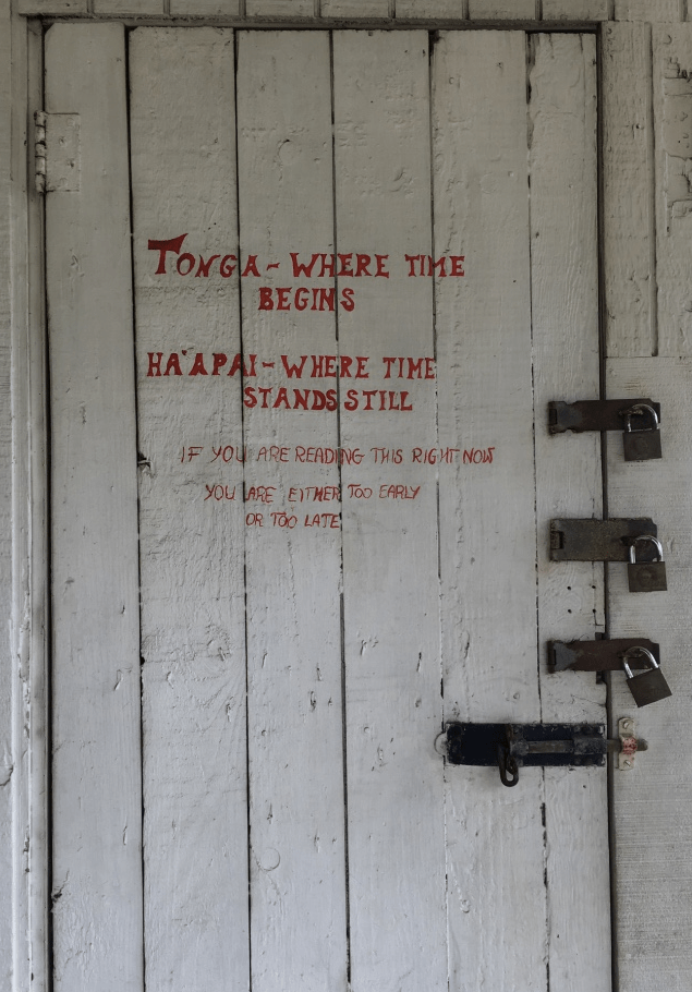 Wir werden wie so oft auf unserer Reise nicht enttäuscht und unsere Zuversicht wird bestätigt. Ein Fleischberg von Frau in der Tourismusinformation wiederholt zunächst im Wesentlichen die Resorts, die wir schon kennen. Ungewöhnlich ist, wieviel Zeit sie sich bei allem lässt und welche Bedeutung sie dem Gesagten verleiht, so als würde sie uns gleich das Geheimnis ewiger Jugend preisgeben. Die Pause zwischen unseren Fragen und ihren Antworten ist so lang, das ich mir nicht sicher bin, ob sie nachdenkt oder gerade Powernapping macht. Ich glaube, ein geduldiger Zeitgenosse zu sein. In diesen Tagen auf Tonga, besonders aber auf der Insel Ha`apai, komme ich mir jedoch wie ein junges Äffchen unter gechillten Schildkröten vor. Aber auch das ist ja Bestandteil unserer Reiseerfahrungen. Ich stelle mich darauf ein. Das kann ich gut. Nach einer wie beschrieben langen Wartezeit scheint ihr plötzlich eine Idee einzufallen- sie reisst die Augen auf und lächelt. Old Tonga Beach – diese Anlage würde kurz vor der offiziellen Registrierung als Ferienunterkunft stehen und sollte unseren Preisvorstellungen entsprechen. Das tut sie!