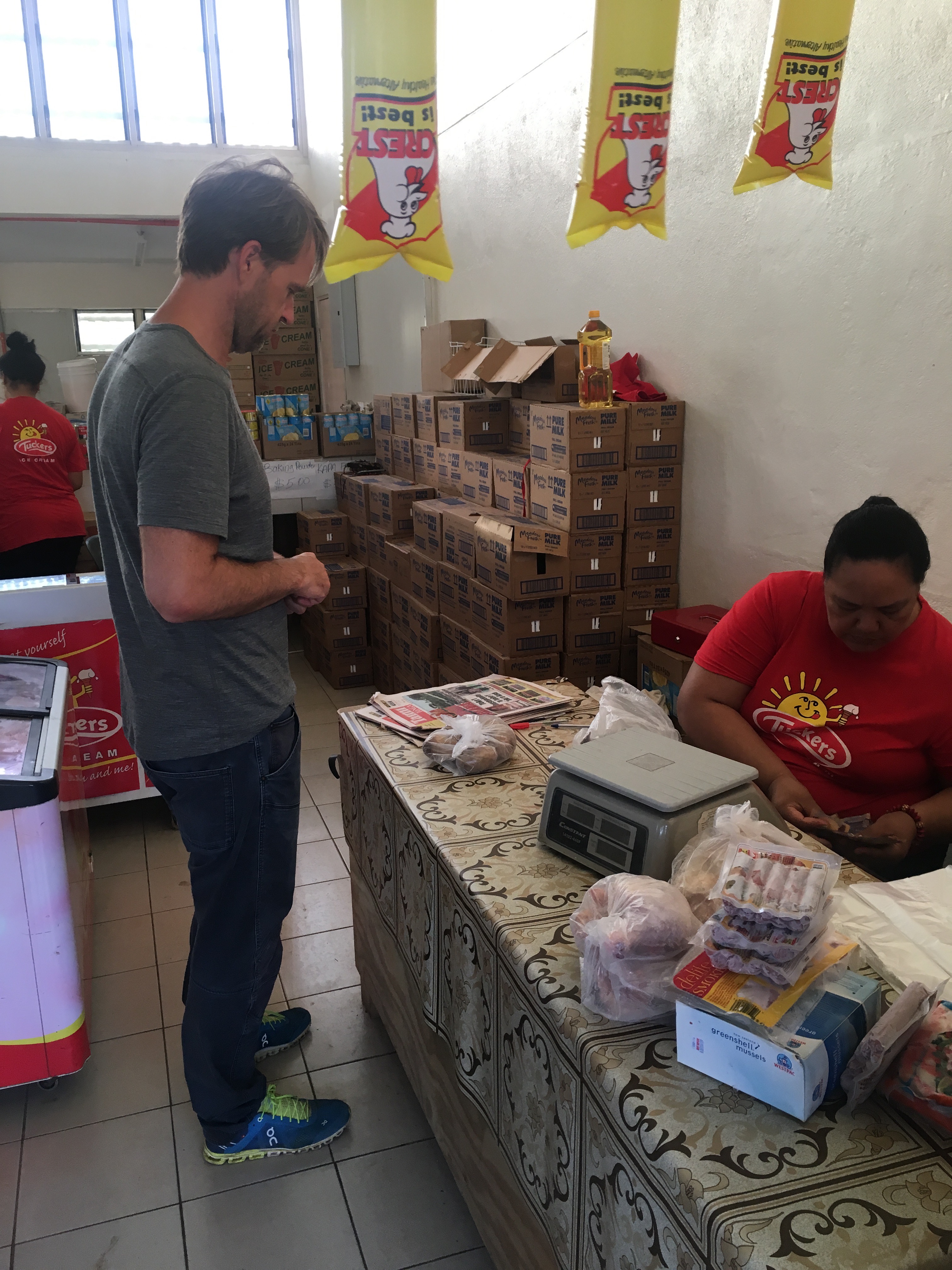 Warum ist auf einer Insel, auf der quasi alles wachsen könnte, kein frisches Obst und Gemüse erhältlich? Unsere Gastgeber lächeln auf unseren Frage hin. Bananen, Melonen und Wurzelgemüse wachsen bei jeder Familie wild im Garten. Kokosnüsse und Papayas holen sie sich bei Bedarf aus dem Busch. Und der Bedarf ist, wie wir bereits wissen, eher gering. Wenn demnach alle haben, was sie brauchen, wozu soll man es da auf dem Markt anbieten? Klingt irgendwie logisch, nützt uns aber nichts.